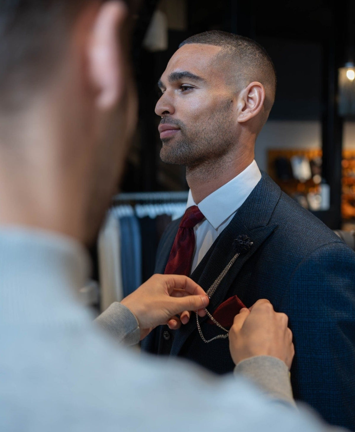 Planning your big day? Book a free wedding suit fitting at Menz Suits, Stockport’s hidden gem for grooms, groomsmen, fathers, and sons. Explore our range of wedding suits, father-and-son sets, and tailored formalwear, and enjoy a relaxed, hour-long fitting for your whole party. Friendly advice, personal attention, and maybe a few chocolates, because finding the perfect suits should be a special experience for everyone.