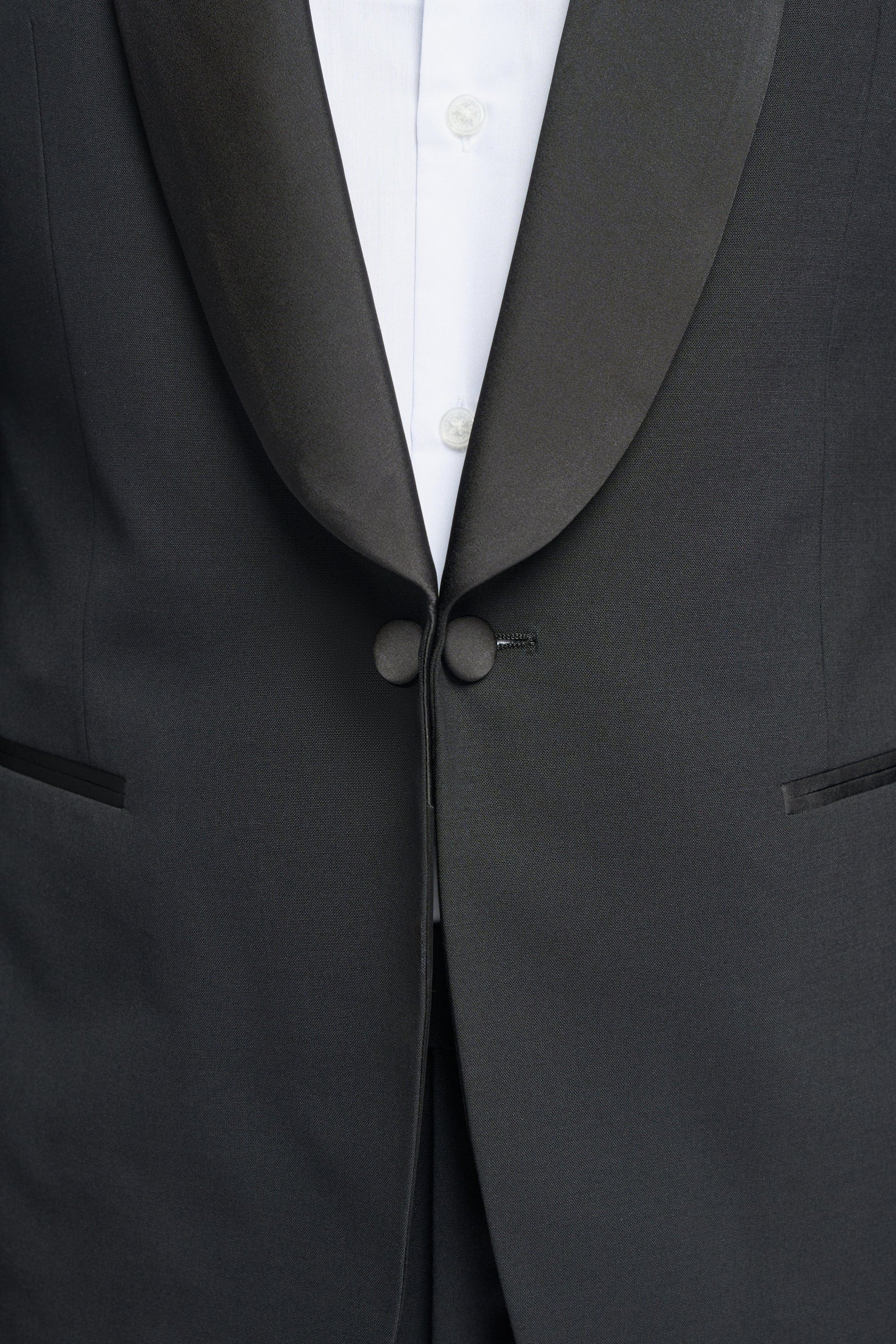 Elevate your formalwear with the Aspen Tux, a tailored men’s black tie tuxedo designed for modern sophistication. Crafted from a premium wool blend and fully lined for comfort, this luxury evening wear features a sleek shawl collar, single-button closure, flat pockets, a boat-shaped chest pocket, and four kissing cuff buttons. Tapered side seams create a contemporary silhouette, ensuring a sharp, confident fit. Paired with tailored Aspen Tux trousers featuring satin side stripes and a crisp crease, this tuxedo is perfect for weddings, galas, red-carpet events, or any black-tie occasion where timeless elegance meets modern refinement.