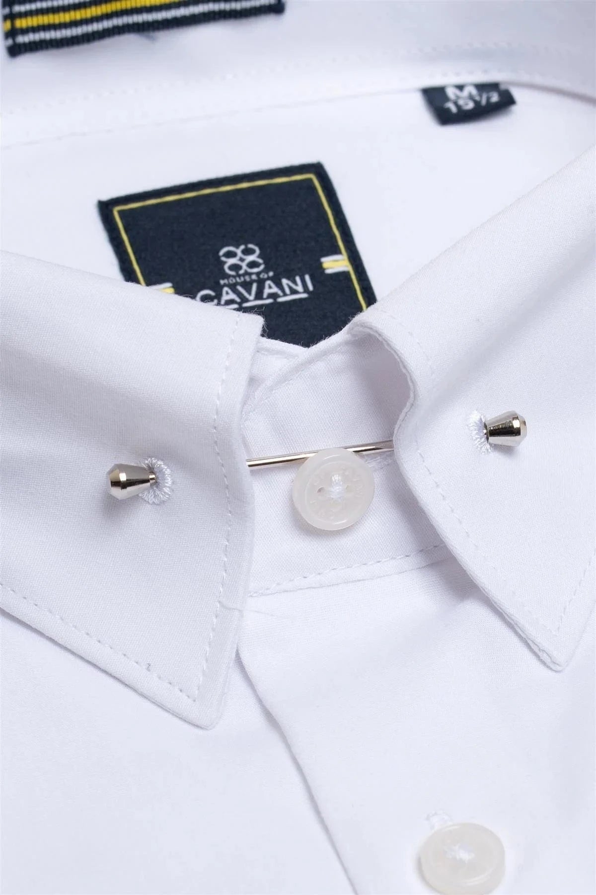 Cavani Diaz White Pin Collar Slim Fit Shirt