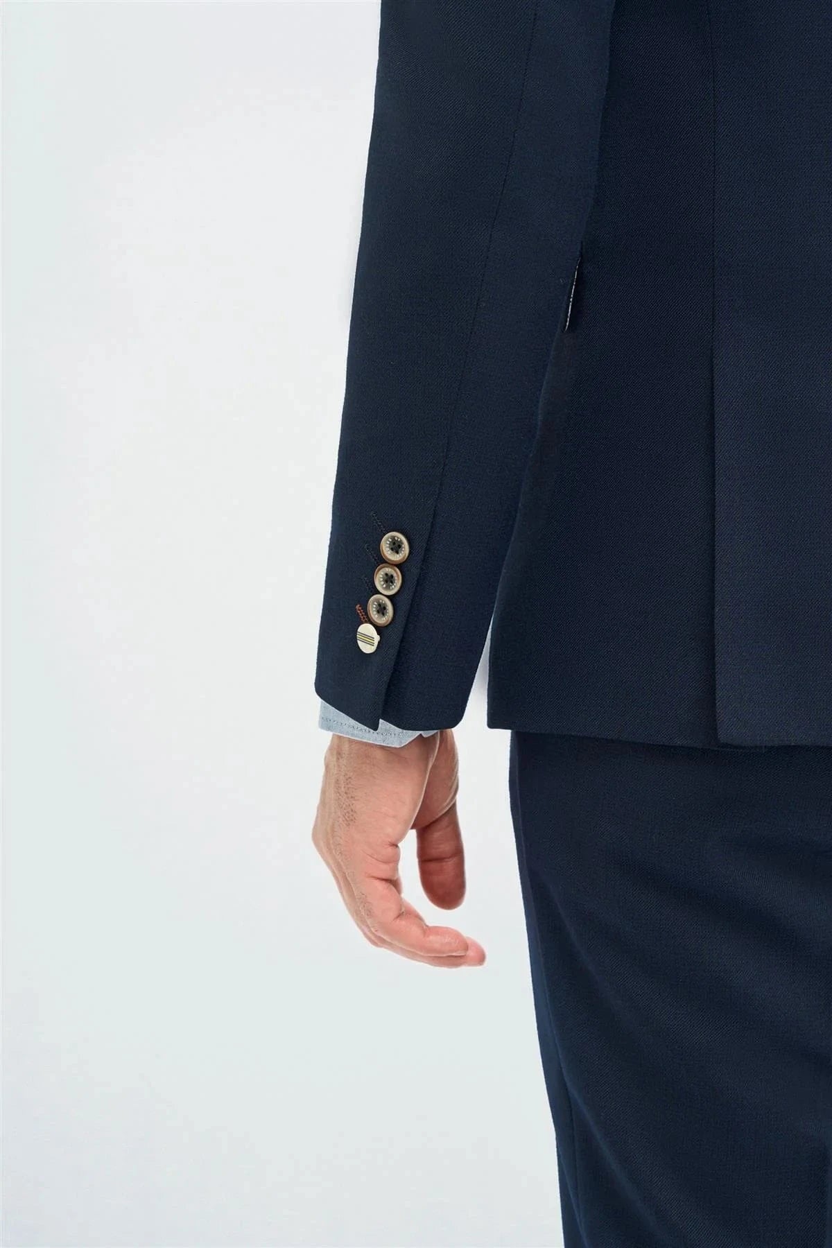 The sleek navy blazer exudes modern charm, while the tailored waistcoat adds a touch of timeless elegance. Designed for warm-weather events, the tapered trousers provide a contemporary fit, and the lightweight, flexible fabric keeps you comfortable all day. Whether you're celebrating under the sun or dancing under the stars, this wedding-ready suit is the perfect blend of style and sophistication.