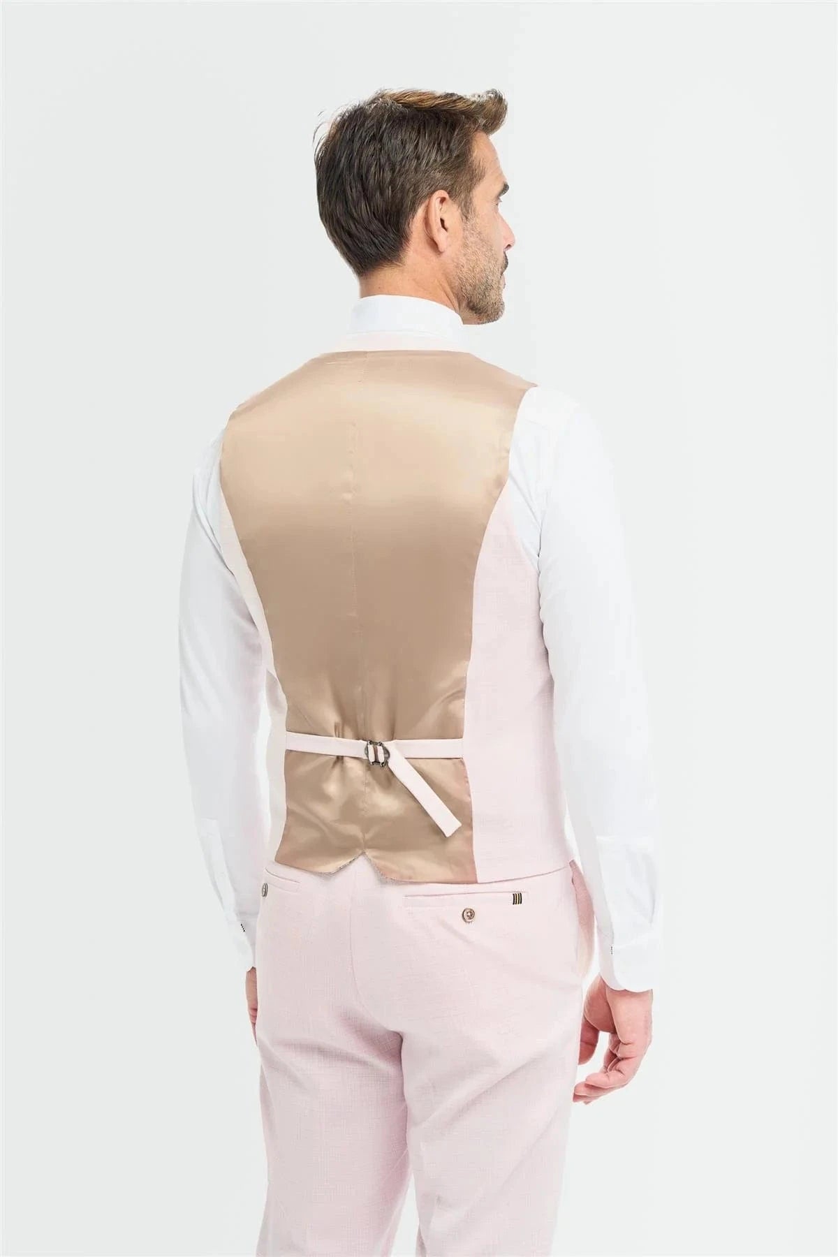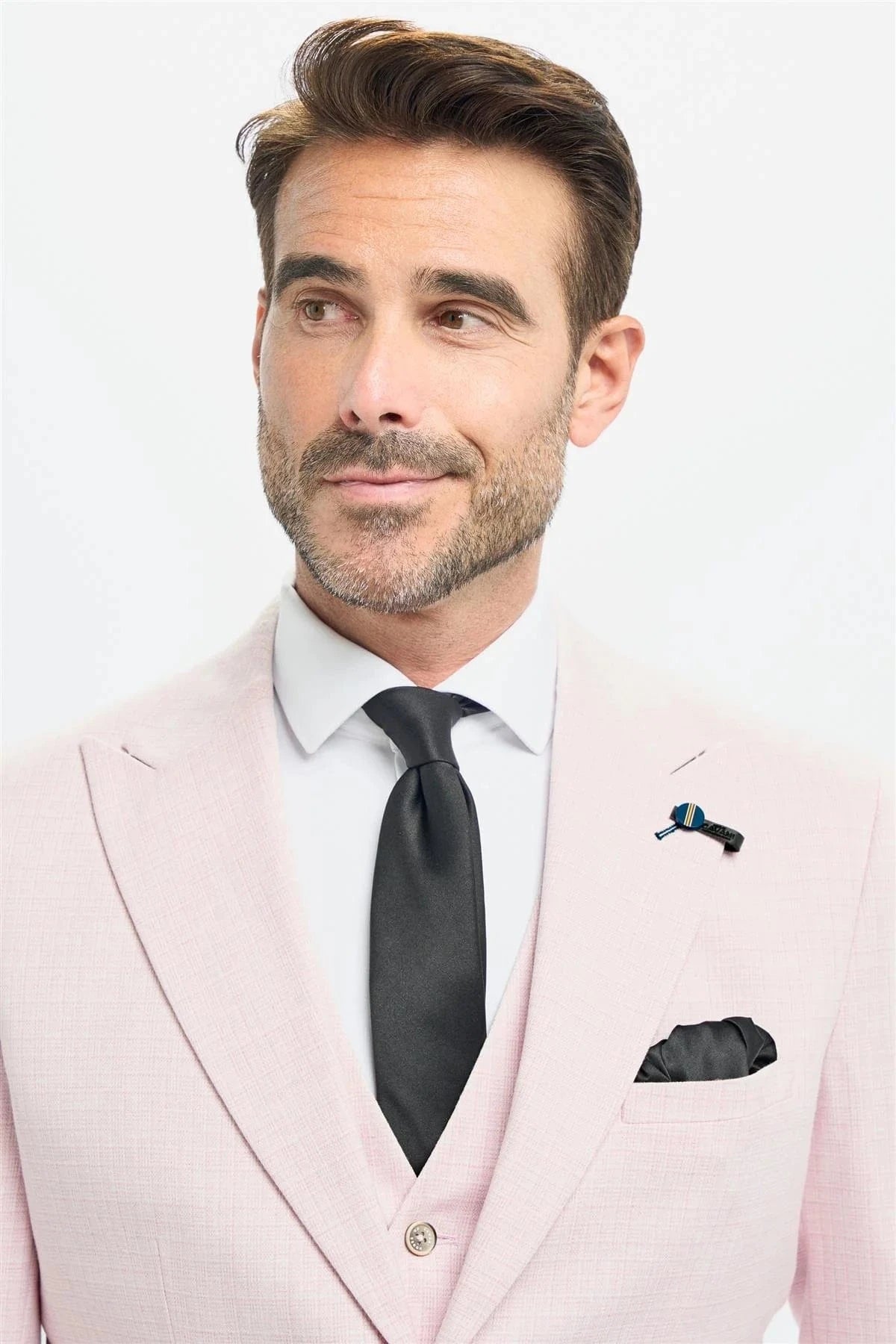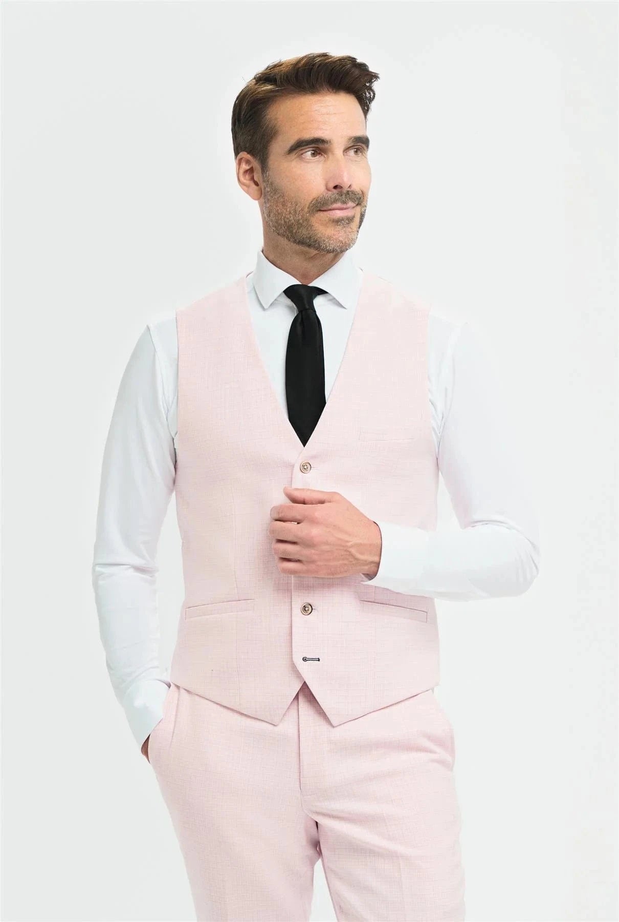The sleek mauve blazer exudes refined charm, while the tailored waistcoat adds a touch of timeless sophistication. The tapered trousers offer a contemporary fit, ensuring a sharp silhouette for any wedding or formal event. Crafted from a flexible fabric blend, this suit provides all-day comfort, making it ideal for warm-weather celebrations.