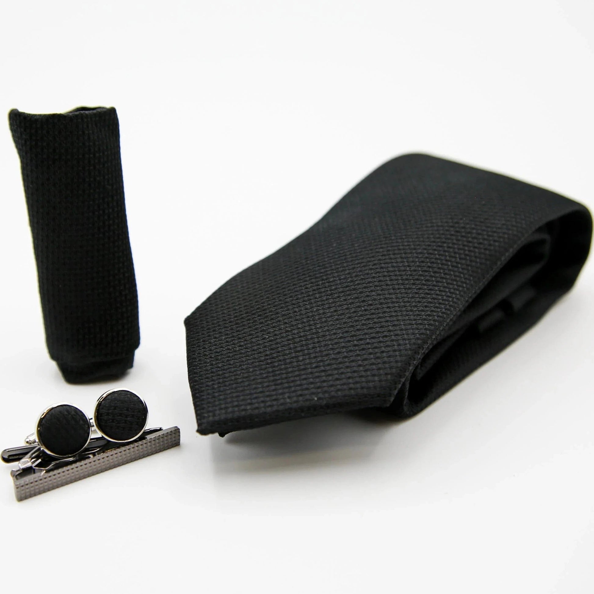 Upgrade your formal attire with the Paul Andrew Black Textured Tie Set, featuring a premium microfiber tie, a matching pocket square, and a sleek tie clip. This stylish set is the ultimate accessory for any wedding, business event, or formal occasion, offering a complete, polished look in one package. The textured tie adds sophistication, while the matching pocket square and tie clip provide the perfect finishing touches to your suit.