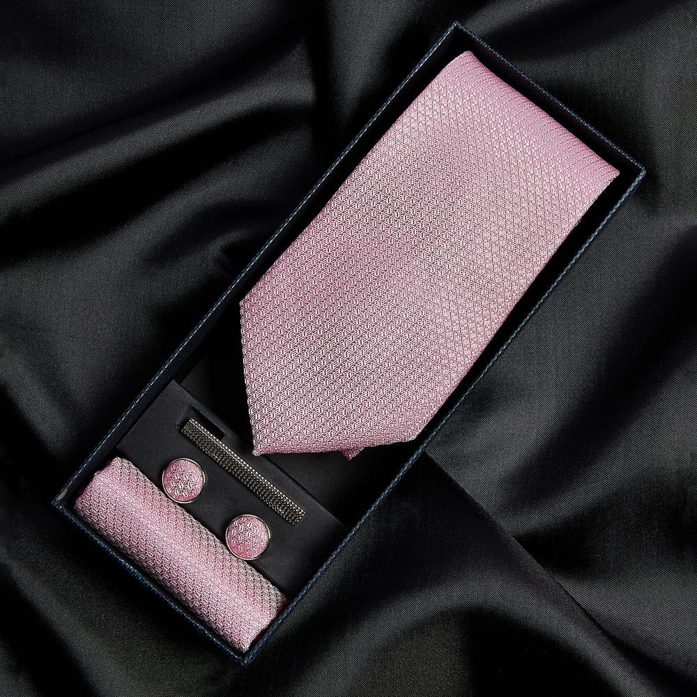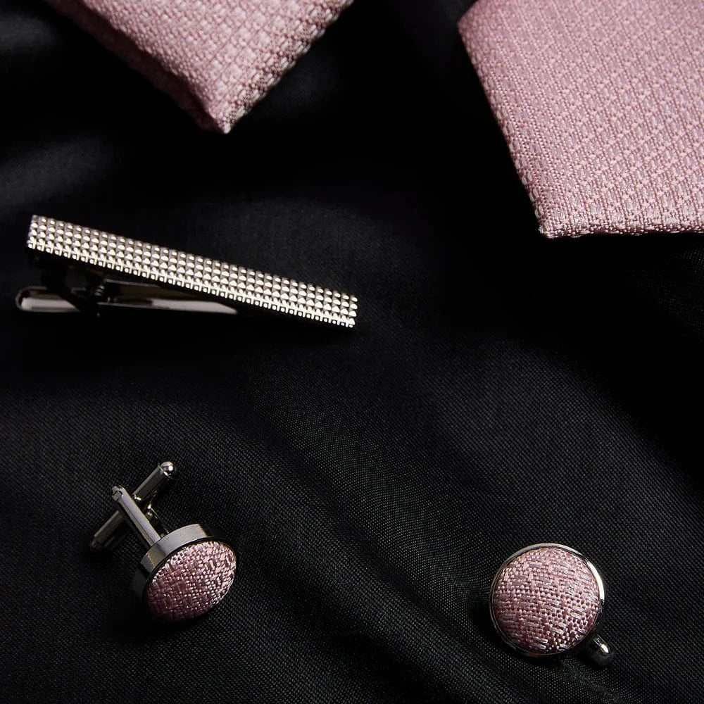 The Paul Andrew light pink tie set brings a fresh, contemporary touch to formalwear, making it perfect for weddings, grooms, and groomsmen. The tie’s lightly textured finish complements its soft pink tone, while the matching pocket square and cufflinks complete a clean, refined look, ideal for coordinating with sage bridesmaids’ dresses or other wedding colours.