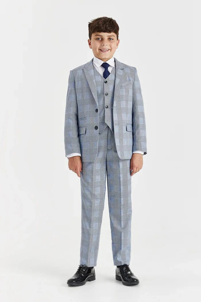 Paul Andrew Mark Sky Blue Check Boys 3-Piece Suit