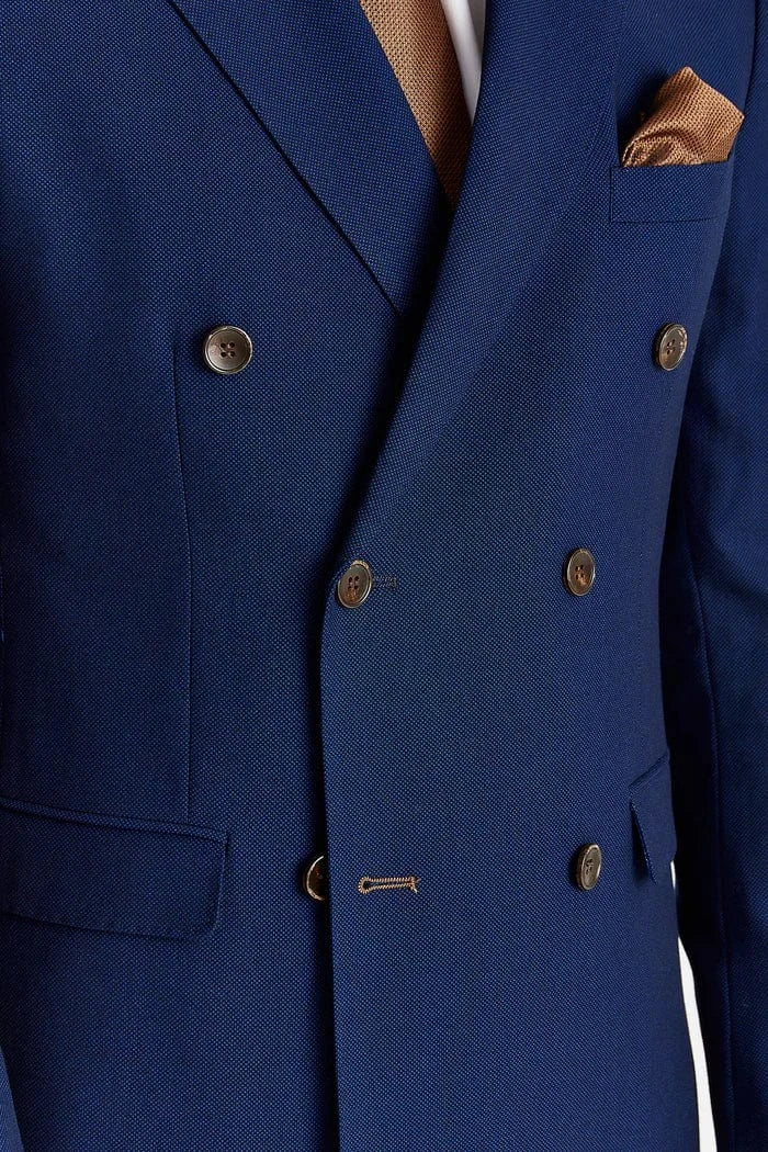 The Mayfair Navy Double-Breasted Suit is a timeless men’s tailored suit, crafted for a sharp, confident look. Featuring a deep navy double-breasted blazer with rich brown buttons and matching tailored trousers, this men’s suit is perfect for weddings, formal events, corporate occasions, and smart evenings out. Designed with comfort and modern tailoring in mind, the Mayfair navy suit delivers elegance and sophistication for any occasion where you want to make a lasting impression.